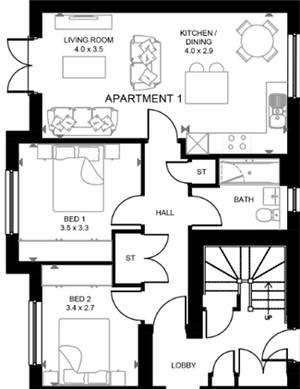 Fflat Llawr Gwaelod 2 Lofft 4 Person ar gael drwy'r cynllun rhent canolraddol drwy Adra.