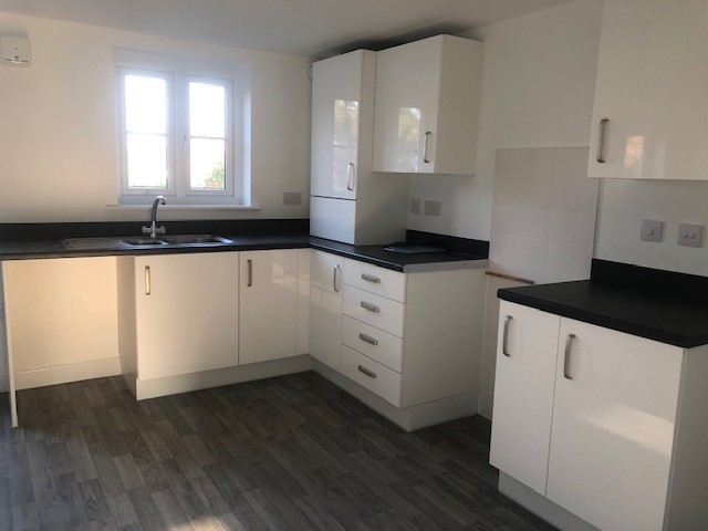 Mae’r ystafell fyw / cegin cynllun agored yn olau gyda digon o le. Mae lliw y gegin yn fodern ac mae lle i roi oergell a rhewgell, popty a pheiriant golchi. Mae maint yr ystafell fyw yn wych, gyda golau yn llifo i mewn drwy’r drysau patio. Gyda ffenestri mawr, a drysau patio – nid yw’r ystafell hon fyth yn ddiflas! Mae bleinds wedi cael eu gosod yn y gegin a’r ystafell fyw.