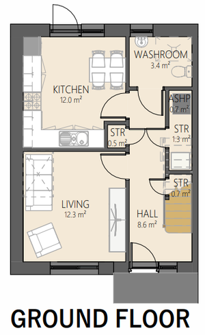 4 x Semi-detached 2 bedroom 4 person houses available on the Intermediate rent scheme with Adra Housing.